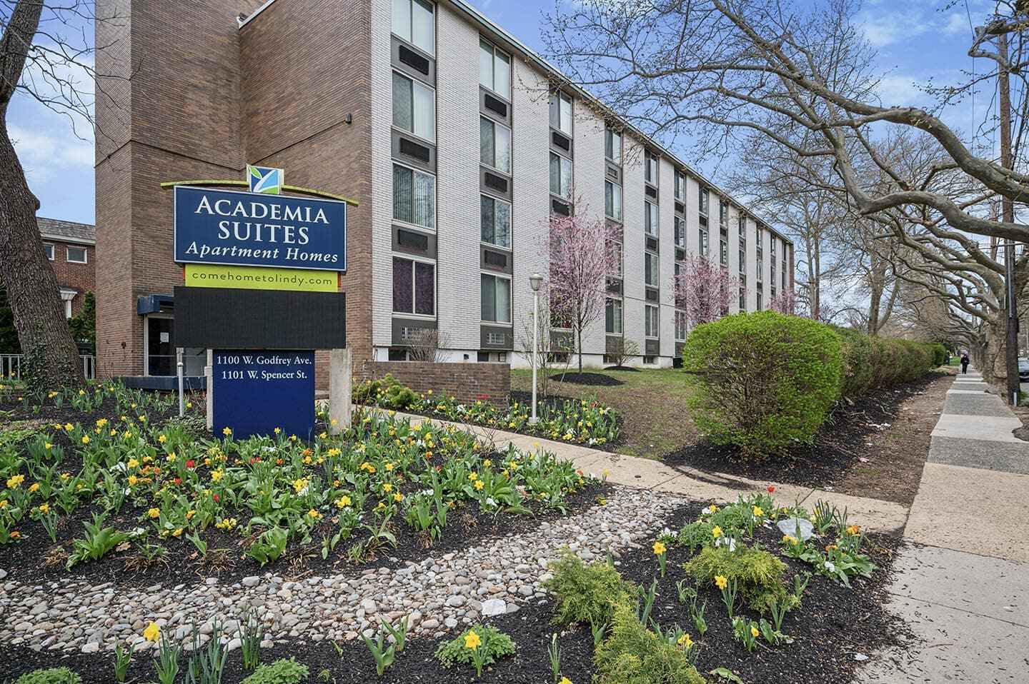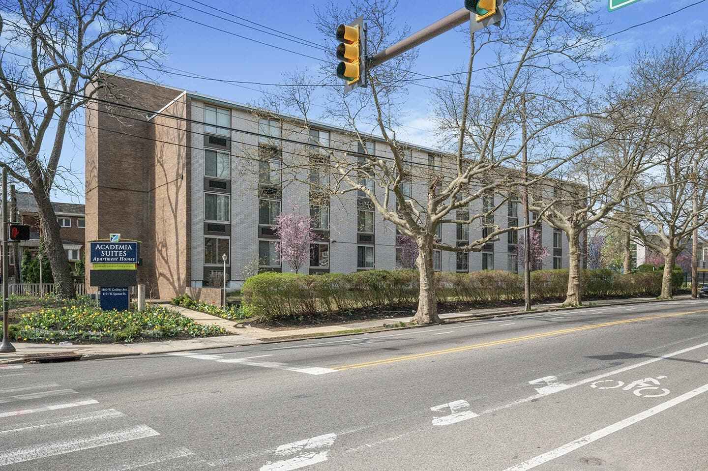 View photos of your new apartment at Academia Suites! From our beautifully manicured property, our fitness center, and our spacious and luxurious apartment homes, it’s easy to imagine yourself at Academia Suites. You’ll love the amenities provided in each apartment, such as an upgraded kitchen with a breakfast bar in select homes, garbage disposal, and a gas range. Our Philadelphia apartments are just minutes from healthcare centers and several academic institutions – perfect for off-campus housing! When renting from Academia Suites, you will enjoy the endless options of things to do within nearby Center City. Contact our office today to schedule a tour and see your new apartment at Academia Suites!
